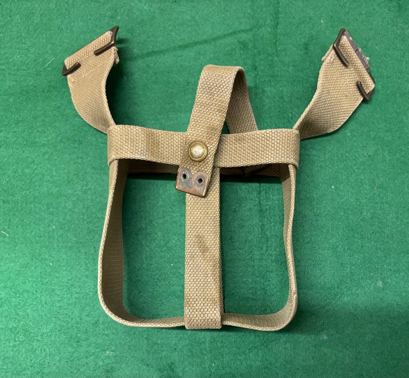 A very good example of an unblanco'd 1915 dated third issue water bottle carrier. Closing stud works well.