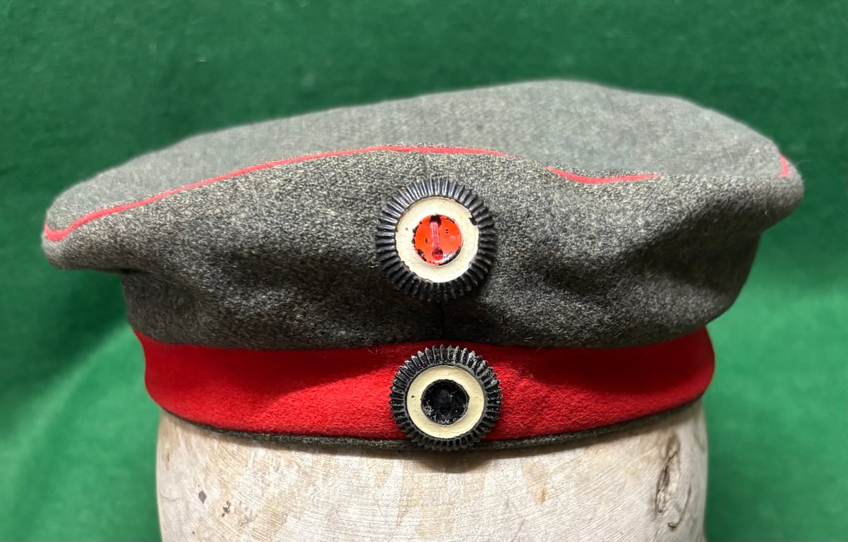 A Model 1907 Feldmutze in excellent condition. The metal cockades retain the small cloth patches behind each one. The internal lining is faintly Depot Marked. There is no moth. These are not uncommon but this example is an excellent example.