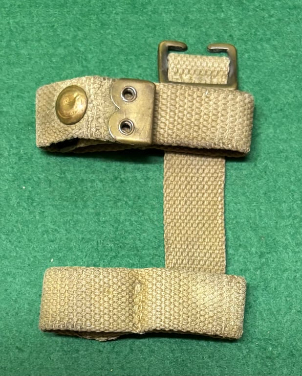 A genuine WE 08 Intrenching Tool Helve Carrier. This example has seen use so by no means mint. The press stud still functions correctly. It is very faintly marked MWS Ltd ???? to the reverse vertical strap. It requires dampening to bring this out. The last picture shows the helve carrier fitted as used. Note only the helve carrier is for sale. There are multiples of modern reproductions of this scare component of P 08 WE. I guarantee this to be a genuine period piece. I am quite happy for my photos to be posted on any reputable online forum for further authentication. Immediate Payment on this item