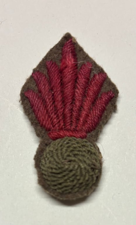 A good uniform removed example of the Infantry Bombers Badge. Introduced by Army Order 403 /1915 it was worn by all soldiers who completed the two week bombers course. The advent of the war brought about rapid improvement of grenade technology and the mills bomb in its various patterns was to become the second weapon of all infantrymen. By the Armistice in excess of 70 million had been manufactured.